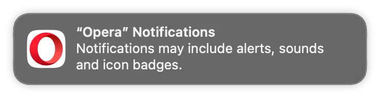 As a next step, they asked for notification approval, which I don’t think is a good time to ask, and they refreshed my Dock app to put an Opera here, without my permission at all π»π»: